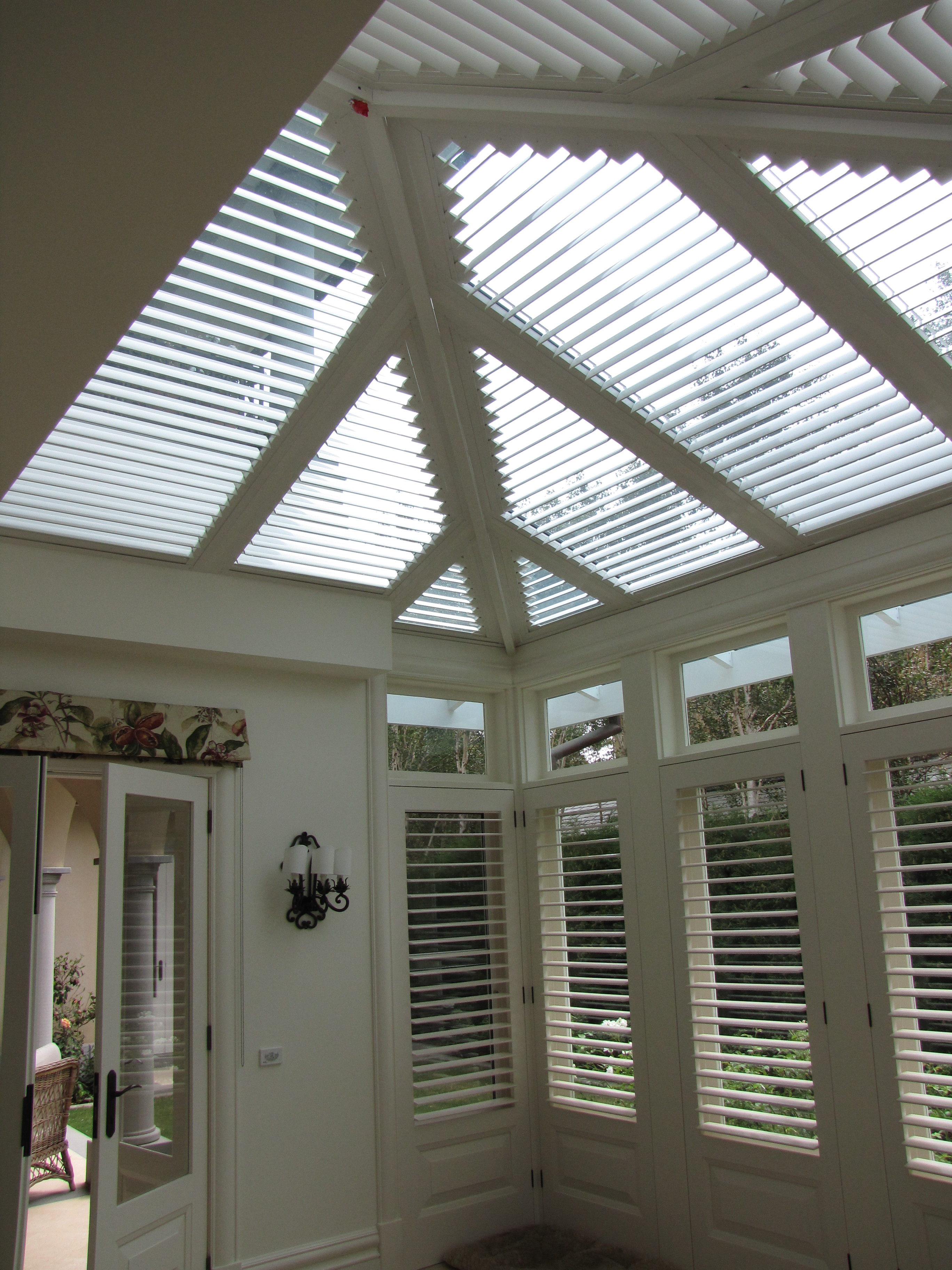 Atrium Louvre Blade Shutter Panels are a great solution for protecting against radiant summer heat problems associated with glass atriums and skylights. These shutter panels can be closed during hot summers to keep the heat out and opened in winter to let the winter sun flow in and warm the house. Atrium shutter panels provide the solution to these seasonal issues - shutting out the hot summer sun, whilst retaining the warmth of the winter sun.